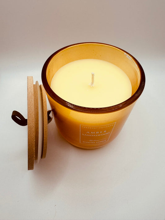 Bougie avec couvercle en bois - Ambre & Bois de Santal